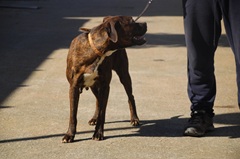 Sanyi, ein ungewöhnlicher Boxermix, macht in der Hundeschule bei unseren Partnern stetige und sehr positive Fortschritte.