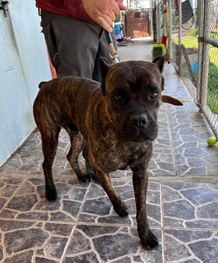 Lupe ist eine sehr gesellige und anhängliche Boxermix-Dame.