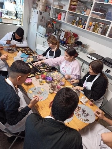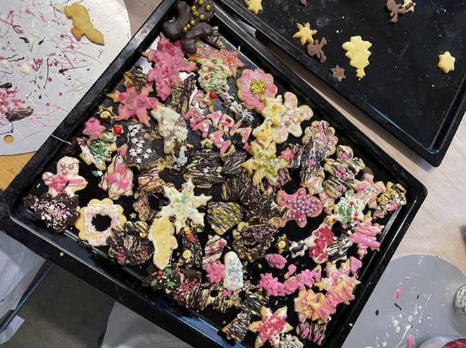 „Jetzt seid ihr aber auch Mal dran!“, bat Frau Sulzmann-Schilling die Gruppe schließlich und in zwei Gruppen entstand eine Vielzahl von bunt verzierten Plätzchen und Vanillekipferl.