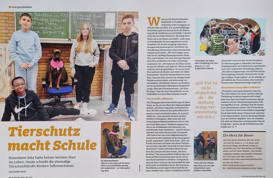 der Konrad-Haenisch-Schule – Inka von „Ein Herz für Boxer e.V.“ besucht die Klasse 7a.