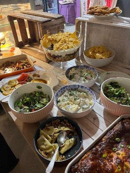 Am Freitag, den 03.11. fand im achten Jahrgang ein etwas anderer Elternabend statt. Gemeinsam mit der Klassenlehrerin der 8a,Frau Ram, trafen sich die Eltern zum „Friend’s giving“- Buffet in Mathildas Glaskuchen Café im Cassellapark. Neben verschiedenen leckeren Speisen und Getränken standen gute Gespräche und vor allem die stärkere Vernetzung der Eltern untereinander auf der Tagesordnung. Auch Jahrgangshündin „Inka“ war mit von der Partie. In gemütlicher Runde konnten offene Fragen zum Praktikum und anderen Themen geklärt werden und spätestens beim köstlichen Nachtisch war man sich einig: Das machen wir noch einmal!