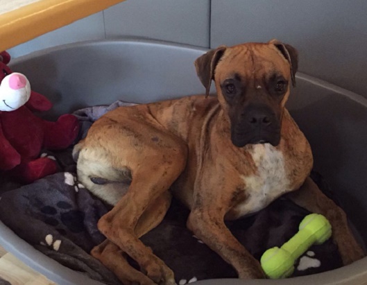 Akuma konnte von unserer Tierschutzkollegin in Huelva aufgenommen werden.