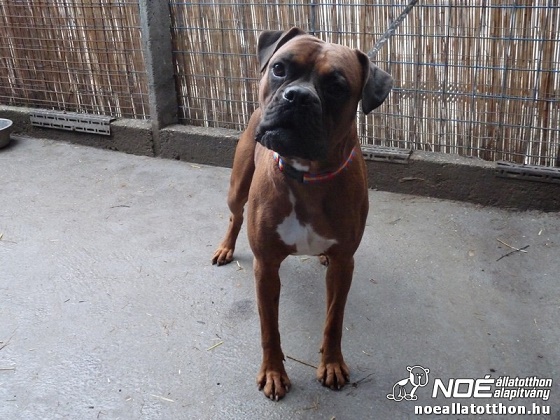 Aligátor ist ein im Dezember 2012 geborener, gelber, reinrassiger Boxerrüde mit kupiertem Schwanz aber unkupierten Ohren, der von seinem früheren Halter in der Hundeauffangstation Illatos út in Budapest abgegeben wurde.