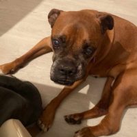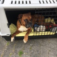 In meinem neuen Zuhause liege ich sehr gerne in meiner Hundetransportbox. Frauchen meint, jetzt weiß sie endlich, warum ein Boxer (Box)er heißt. Verstehe ich zwar nicht, aber gut.