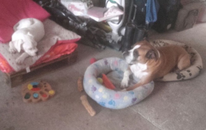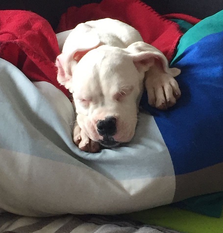 Unsere Mama eine weiße Boxerhündin durfte sie leider nicht auch mitnehmen. Wir hoffen sehr, dass es ihr bald besser gehen wird. Papa ist ein großer stattlicher roter Boxer – mehr können wir von ihm nicht berichten…..