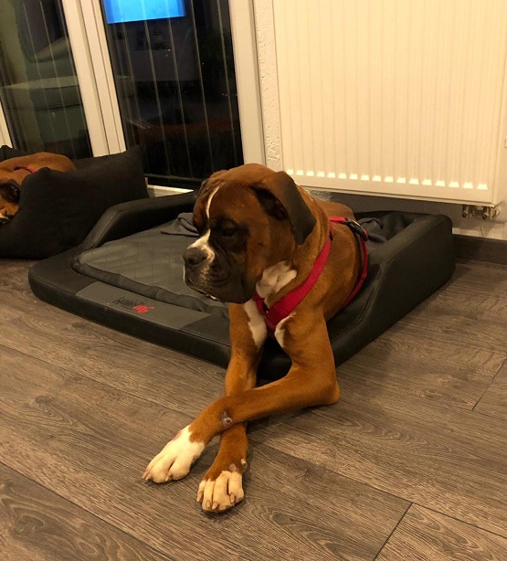 Er lebt hier mit einer weiteren Boxer Hündin Kimba (4 Jahre), der er gerne öfters mal zeigen möchte wer der Chef ist.