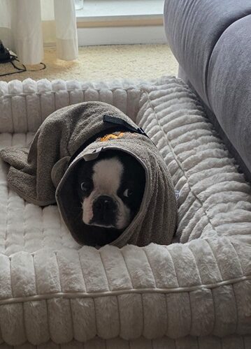 Unsere Boston Terrier Sippe kommt auch aus der gleichen Beschlagnahmung in Spanien wie unsere EB-Family und wird derzeit bei unseren Partnern liebevoll betreut.