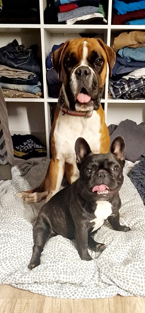 Nach und nach blühe ich immer mehr auf und lasse auch mal den typischen Boxi-Clown raus. Ich habe aber auch schon einiges gelernt, mache schon „Sitz“, kann gut an der Leine laufen, sogar alleine bleiben kann ich schon mal 1-2 Stunden…natürlich mit meiner kleinen Schwester zusammen.