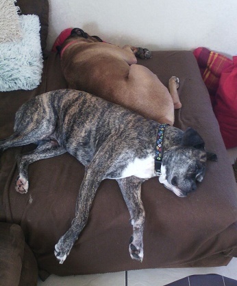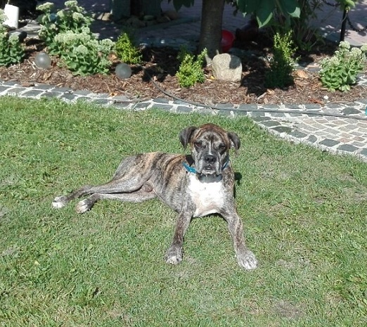 Auf meiner Pflegestelle bei Melanie und ihrer Familie blühe ich jeden Tag mehr auf. Vor allem tut mir die Gesellschaft von Boxer Bingo sehr gut. Klar, habe ich gesundheitlich meine Defizite, doch der Tierarzt ist hier nach den wenigen Tagen schon sehr zufrieden mit den Fortschritten, die ich mache. Die Leishmaniose-Behandlung hat begonnen. In der rechten Schulter habe ich eine ordentlich Arthrose – die ich scheinbar aber schon sehr lange mit mir trage und mit der ich mich arrangiert habe.