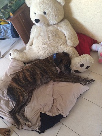 Arco ist nur Haut und Knochen. Ein so anschmiegsamer Boxer, der sicher schon ganz viel Furchtbares in seinem Leben erleiden mußte.