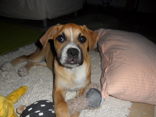 – 10.02.13 Aurora, wurde in Spanien vermittelt, aber zurückgegeben, da sie angeblich zuviel Arbeit gemacht hat! Nun sind es 9 Welpen und alle sind reserviert!– 05.02.14 Neue Bilder von unseren Welpen!– Wir stellen Ihnen unseren Boxer-Mix Nachwuchs vor!Bei dem Tierarzt unserer Partner in Spanien wurde eine Boxerhündin zum Kaiserschnitt abgegeben. Die arme Mama hatte leider viel zu viele Babies, so dass sie nicht auf natürlichem Wege kommen konnten.Die Babies haben überlebt, die man dann aber nicht mit nach Hause nehmen wollte.Zur Zeit werden die kleinen Boxer-Mix-Welpen auf einer Pflegestelle gepäppelt, die im Moment alle Hände voll zu tun hat.Im März werden die Babies dann soweit sein, dass sie ihre Reise nach Deutschland antreten dürfen.