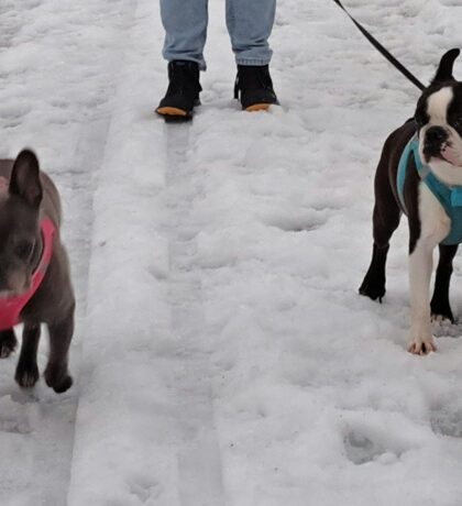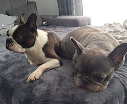 Meine Mitbewohnerin Elli, eine kleine French Bully Dame hat mich zwar anfangs etwas argwöhnisch angeschaut, aber inzwischen vertragen wir uns richtig gut – solange ich mich von ihrem Futternapf fernhalte… 😂