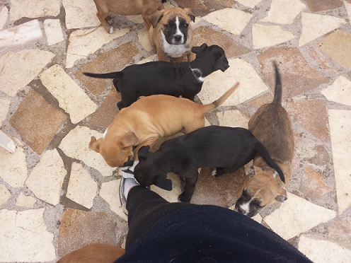 – 10.02.13 Aurora, wurde in Spanien vermittelt, aber zurückgegeben, da sie angeblich zuviel Arbeit gemacht hat! Nun sind es 9 Welpen und alle sind reserviert!– 05.02.14 Neue Bilder von unseren Welpen!– Wir stellen Ihnen unseren Boxer-Mix Nachwuchs vor!Bei dem Tierarzt unserer Partner in Spanien wurde eine Boxerhündin zum Kaiserschnitt abgegeben. Die arme Mama hatte leider viel zu viele Babies, so dass sie nicht auf natürlichem Wege kommen konnten.Die Babies haben überlebt, die man dann aber nicht mit nach Hause nehmen wollte.Zur Zeit werden die kleinen Boxer-Mix-Welpen auf einer Pflegestelle gepäppelt, die im Moment alle Hände voll zu tun hat.Im März werden die Babies dann soweit sein, dass sie ihre Reise nach Deutschland antreten dürfen.