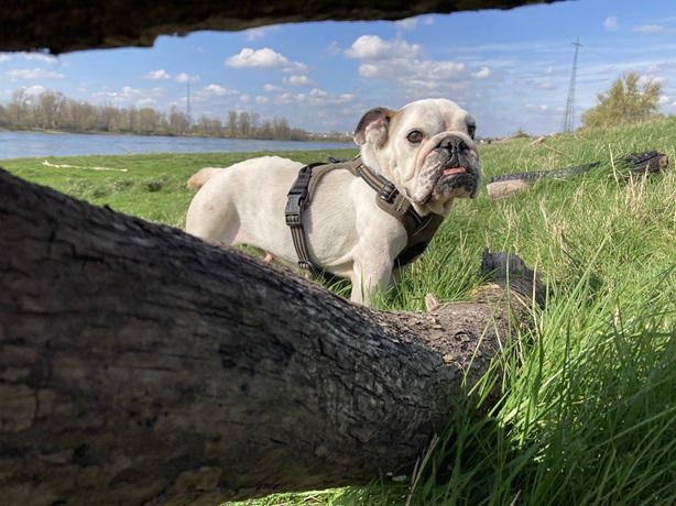 Hier lebe ich mit einem Rüden zusammen. Mittlerweile finde ich es toll mit ihm zu kuscheln und teile alles mit ihm. Er hat nämlich eines verstanden: Bullydame first!