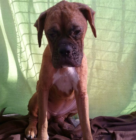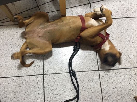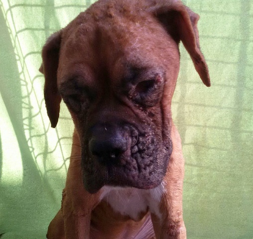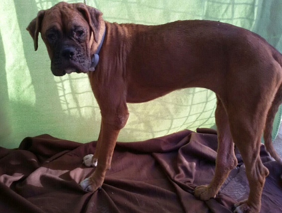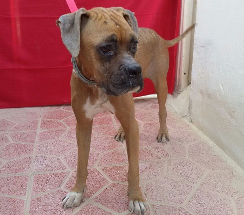 Wir erhielten Anfang der Woche eine Anfrage von einem spanischen Amtsveterinär, der uns um Aufnahme für eine Boxerhündin bat. Der Besitzer kümmerte sich nicht. Die Hündin in äußerst schlechtem Zustand.