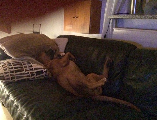 Danach kuscheln wir uns dann zu Hause ein – und die Couch ist meistens mein Reich. Mir geht’s also rundum gut!