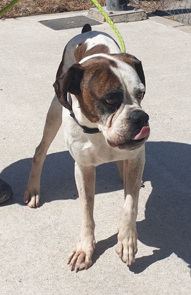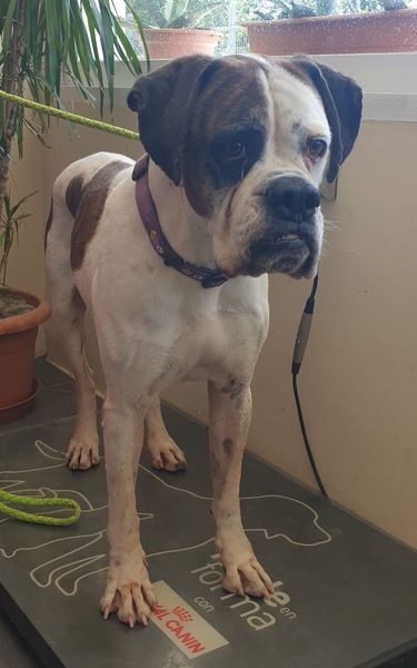 Wesen: ruhiger und anhänglicher Boxer, gut erzogen, artgenossenverträglich, gerne zu Kindern
