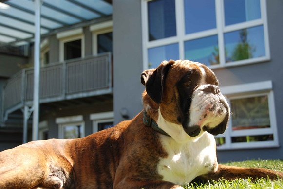 Am nächsten Tag habe ich meine weiteren Familienmitglieder kennengelernt und hab sie sowohl mit Boxerküsschen als auch mit Anspringen begrüßt. Das fanden sie aber alle nicht so toll und mittlerweile haben die Boxerküsschen nachgelassen und das Anspringen mache ich auch nicht mehr.