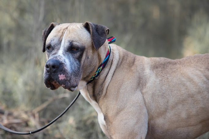 Uns fiel gleich eine kleine Boxerhündin ins Auge…gesagt, getan, beworben. Schon am nächsten Tag bekamen wir einen netten Anruf vom Verein, die Hündin war leider schon reserviert, aber es wäre da noch ein Hund, der käme schon mit dem Transprt in der kommenden Woche…es wurden Bilder geschickt: riesengroß….Boxer-Doggen-Mix, traurige Augen…so, als hätte er aufgegeben.