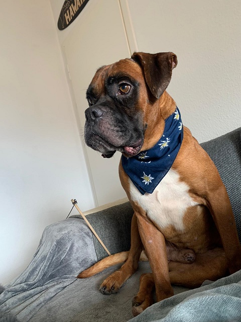 Mit meinem liebevollen und anhänglichen Wesen habe ich meine Menschen schnell überzeugt, dass ich ihr Boxerchen bin und hier mein Körbchen gefunden habe.