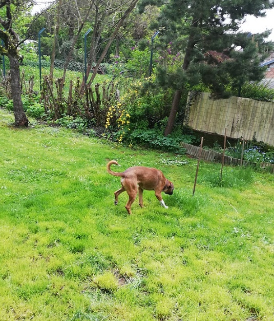 Er flitzt durch den Garten und falls ihm mal wieder etwas Angst macht, sucht er Schutz im Haus. Er hat auch gleich mal verschiedene Schlafstellen im Haus getestet und siehe da, er mag es kuschelig weich.