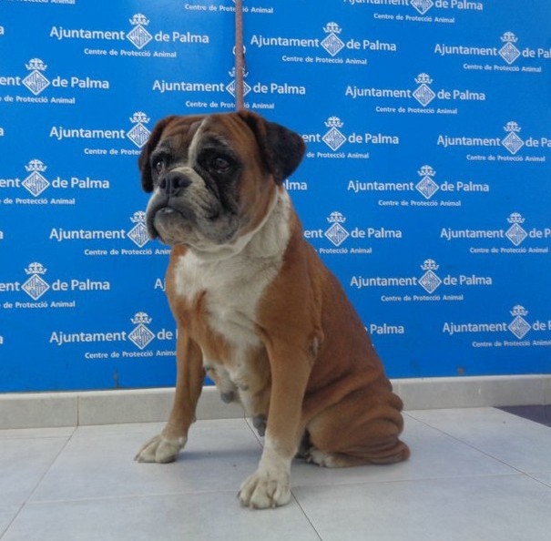 Sie ist ein altes ausrangiertes Boxermädchen – das für die Zucht wohl nicht mehr nutze.