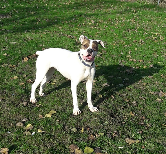 Wesen: liebes und sehr aktives Boxermixmädchen, bedingt artgenossenverträglich, Einzelplatz ohne Kinder, keine Katzen