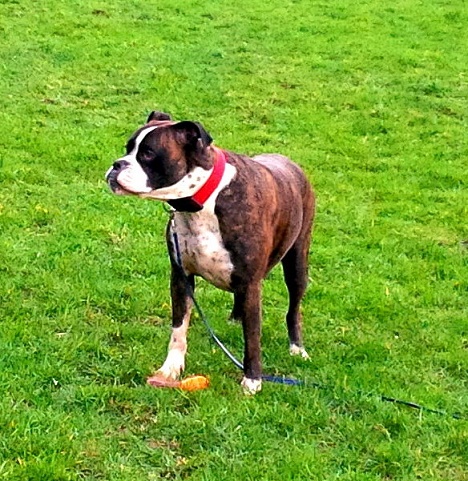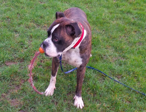 Wenn ich von der Leine bin kann ich mich so richtig entfalten, um Herrchen herum rennen, Stöckchen durch die Gegend schleppen … eben alles was ein Boxer so gerne mag. Wir sind viel an der Ruhr unterwegs, mit dem Kong spielen, Tennisbälle jagen und mit viel Glück mit Kollegen Zocken.