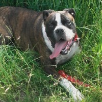 heute melde ich mich, das Herrchen mal zu Wort. Im Juli letzen Jahres war es soweit. Wir setzten uns ins Auto und machten uns auf den Weg nach Osnabrück um uns einen Boxer an zu sehen. Mein erster Eindruck, junger Lümmel mit viel Power, ungestüm. Als erstes im Auslauf spielen, mit einem Stoffknochen zocken, erste Tuchfühlung. Meinen Frau noch skeptisch, aber mir zu liebe gab es keine zwei Meinungen. Beim Auto angekommen, stieg Aron selbstverständlich in Auto. Er hatte gewonnen. „Ihr braucht keine Schleife drum machen, wir nehmen ihn so mit!“
