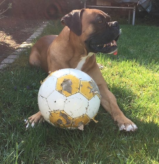 Edward wiegt mittlerweile 38kg (!), er ist aber sicher für 40-42kg gut. Mittlerweile ist er angekommen, er wälzt sich, spielt mit anderen Hunden und wir üben fleissig. Die Grundkommandos beherrscht er, wenn seine Sturheit es erlaubt, wir nehmen ihn mit in Restaurants, er bettelt nicht und ist durchgängig freundlich.
