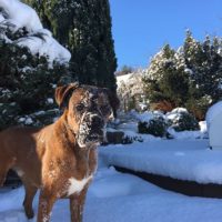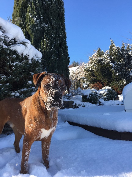 Hutch liebt den Schnee fast noch mehr als das Wasser, vor allem flippt er jeweils fast aus, wenn er den Ball im Schnee suchen darf.