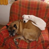 Hier ist es wunderbar. Die Herrchen verwöhnen mich total. Die beiden großen Boxer, Tommy und Gitti sind total nett.