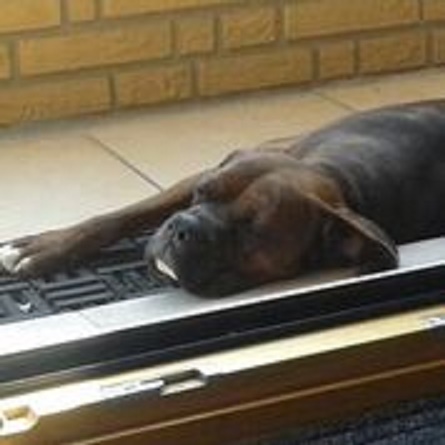 Zu Hause benimmt sie sich ebenfalls hervorragend, bleibt durchaus auch mal längere Zeit alleine, ohne irgendwelchen Blödsinn anzustellen (was ich nicht von allen Boxern zu Beginn so sagen konnte. Da gab es schon abenteuerliche Ideen, ‚die Bude auf links zu drehen‘).