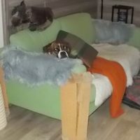 Wir sind zur Zeit wieder in Schweden und Lupi geniesst die Kälte und den Schnee. Wenn man dann nach dem Spaziergang wieder im gemütlich warmen Haus ist, baut man sich erst mal eine schöne warme Hütte auf dem Sofa – Frauchen hat es ja sowieso aufgegeben, dich runter zu jagen… :-D