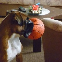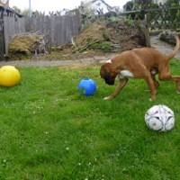 Er genießt es hier, liebt Bälle und alles was irgendwie nach SPIEL & SPAß aussieht, macht er gerne zu seinem Eigentum. Er beschäftigt sich auch allein.