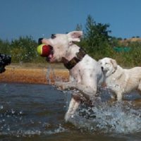 Dafür, dass er anfangs nicht mal aus dem See getrunken hat, macht er sich so langsam als Wasserratte.