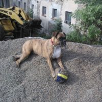 Trufa stürzt sich wie ein Aasgeier auf alle Bälle und gibt sie auch nur ungern wieder ab. Bei der Ernährung mussten wir etwas experimentieren und haben dabei das Industriefutter komplett abgewählt. Das führte zu Haarausfall, schlechtem Atem, fettigem Fell und übermäßigem Stuhlgang. Wir bekommen das im Supermarkt aussortierte Fleisch und haben für Trufa einen extra Gefrierschrank angeschafft. Seitdem sind Stuhl, Fell und Atem im Optimalbereich. Schnee hat sie auch schon kennengelernt, war aber beim Schlittenfahren eher ein Bremser, zum Ärger der Nachbarkinder…