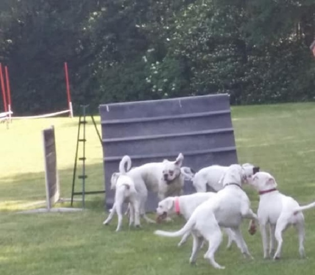 Mit Frauchen auf einem Treffen für weiße Boxer!
