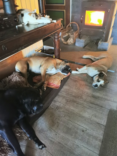 das ist ja schön, dass ihr nachfragt. Ja, unserm Bertl geht es gut. Vor zwei Jahren hat er noch eine Freundin (übernommen aus einem desolaten Haushalt) bekommen, weil unsere Dicke zu träge für ihn ist. Mit Gina spielt und tobt er ganz wunderbar. War immer gesund und ist es noch… Das Bild hab ich gerade eben gemacht. Draußen schneit es, da ist der Kamin der beste Platz, findet auch eine unserer Katzen, mit denen sich Bertl auch ganz wunderbar verträgt. Wir freuen uns sehr über den kleinen Kerl 😊