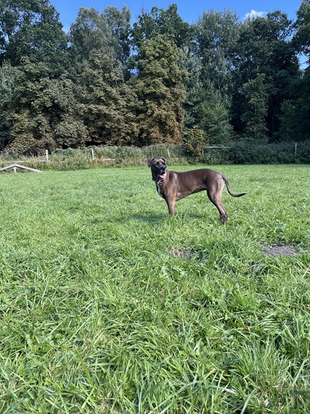 Mittlerweile habe ich das Baden für mich entdeckt. Bis jetzt habe ich mich schon im Haus geschüttelt, wenn es draußen geregnet hat, aber weil ich meine Familie aus dem Meer retten wollte, musste ich schwimmen und seitdem ist Wasser mein Element. Mit anderen Hunden spielen ist aber immer noch mein liebstes Hobby.