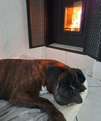 Der erste Winter in Oberfranken war natürlich im Gegensatz zu Kroatien etwas kälter. Aber da hatte ich einen tollen Wintermantel für draußen, anschließend konnte ich meinen Rücken am Kachelofen wärmen. Für meine alten Gelenke ideal.