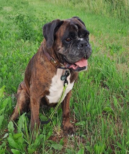 Ich bin super glücklich in meinem neuen Zuhause. Tausend Dank an „Ein Herz für Boxer“, dass sie sich um mich gekümmert haben.