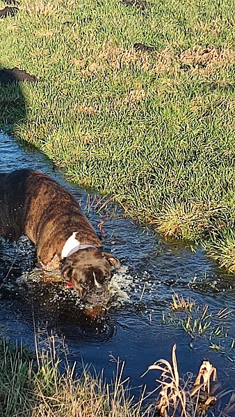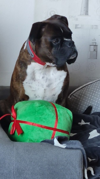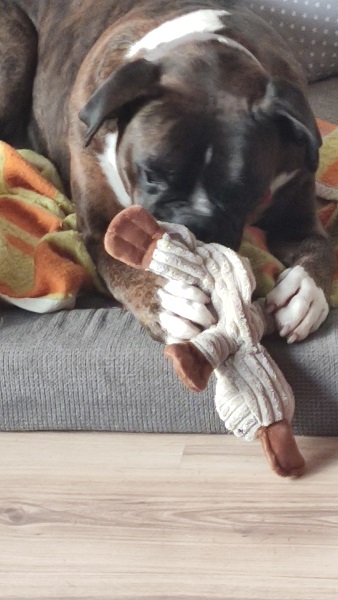Ich lebe jetzt schon bald ein Jahr bei meiner Familie, schicke Ihnen ein paar Photos von mir dazu und möchte Ihnen mitteilen, daß ich hier nie wieder weg will, mich pudel, ach so nei boxerwohl fühle, so nun noch ein nasser Schlapp mit viel Boxerglitzer.