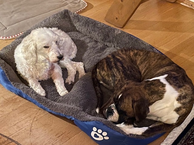 Das Zsammenleben mit unserem zweiten Hund Morten klappt super. Sie mögen sich gern und gehen sie mal getrennte Wege, wird der andere vermisst.