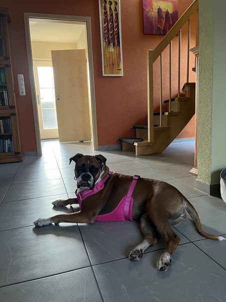 Minuri geht es sehr gut und wir sind jeden Tag glücklich darüber, sie bei uns zu haben. Boxertypisch versprüht sie viel Lebensfreude und ist für jeden Schabernack zu haben.