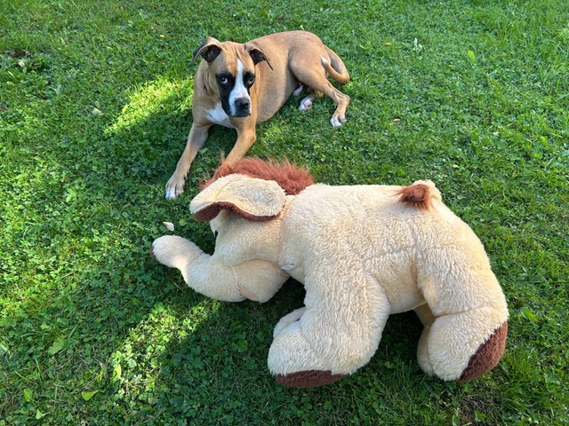Wir können Ihn überall mitnehmen und Ausflüge machen (zu Bekannten, Freilandmuseum etc.), da er ein sehr braver Boxer-Dickschädel ist.
