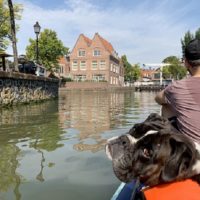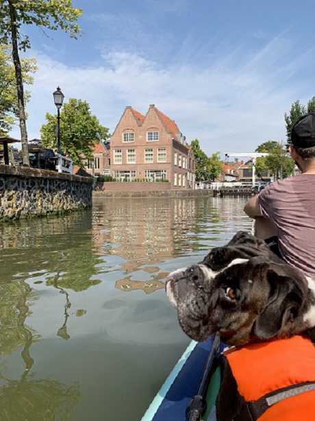 Sie hat mittlerweile ein graues Schnäuzchen, ist aber immer noch aufgeweckt und für jeden Spaß zu haben, bspw. Stand-Up-Paddling mit ihren Menschen!