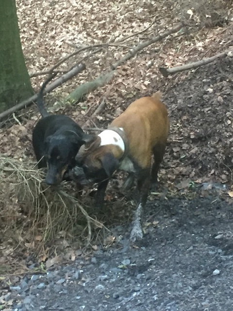 Mittlerweile haben wir Jobchairing gemacht, ich registriere, Michaele übernimmt! War einer von vielen Tips der lieben Silke. So läuft es ganz gut ?. An der Leine bin ich schon viel besser, natürlich mit Luft nach oben, aber auch ich brauche Ziele ?. Im Freilauf mit Freunden geht so richtig die Post ab! Ich geniesse es in vollen Zügen mit Artgenossen zu spielen, den Wald oder die Wiesen zu erkunden. Naja und Frauchen achtet darauf das ich mich auch mit Boxern treffe, sie meint wir ticken halt alle sehr ähnlich (Recht hat sie).