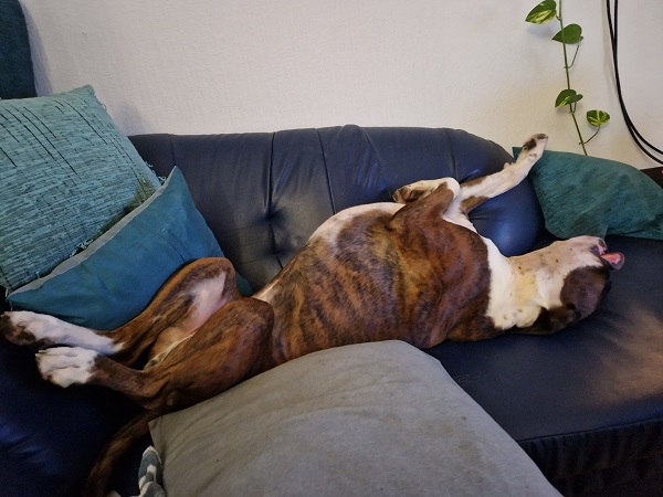 Zwischendurch gabs ne Zwangspause weil Frauchen sich netterweise Corona eingefangen hat, mann war das toll – wir haben tagelang im Bett gelegen und gekuschelt. Frauchen sagt sie war für die extra Heizung während der Fieberzeit ausgesprochen dankbar, sie ist dahingeflossen vor Freude.