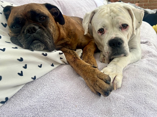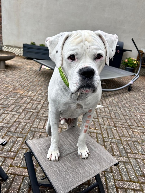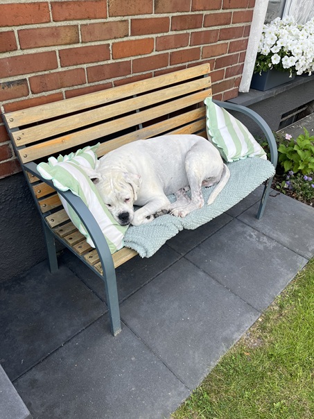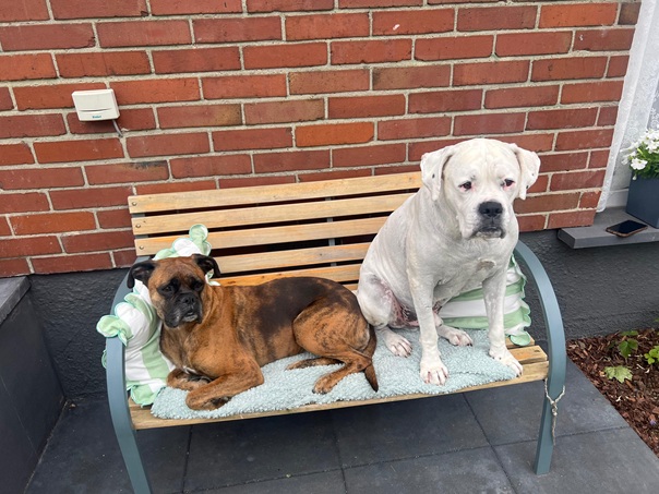 Mir geht es gut und man sagt mir nach , das ich der entspannteste Hund sei , den man je gesehen hat, mich kann nichts aus der Ruhe bringen, außer bei der Zubereitung vom Essen da bin ich schon mal etwas ungeduldig. Damit ihr auch seht wie gut es mir geht schicke ich euch ein paar Bilder. Übrigens, im Mai habe ich eine Schwester bekommen, ein Boxer-Mädel das angeblich keine anderen Hunde mochte.
